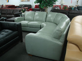 Shown Natuzzi Editions A123 Leather sectional 3pc in apple green leather. On sale $2398.00 Reg. $4150.00 WOW